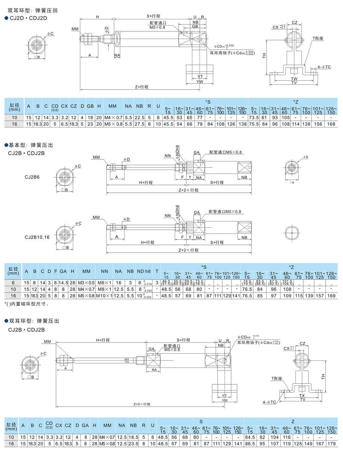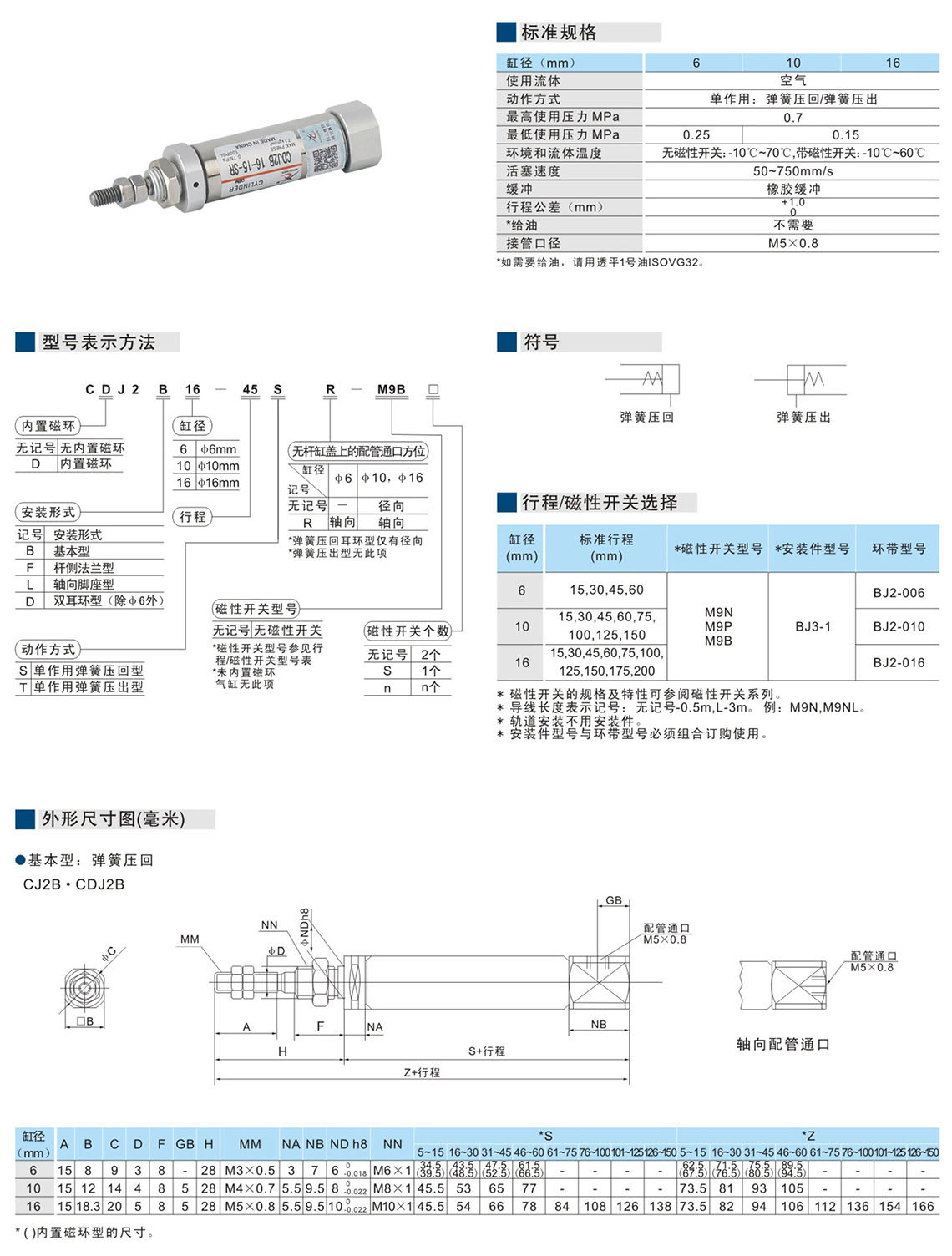 不銹鋼迷你氣缸(單作用)CJ2系列(Φ6-Φ16)