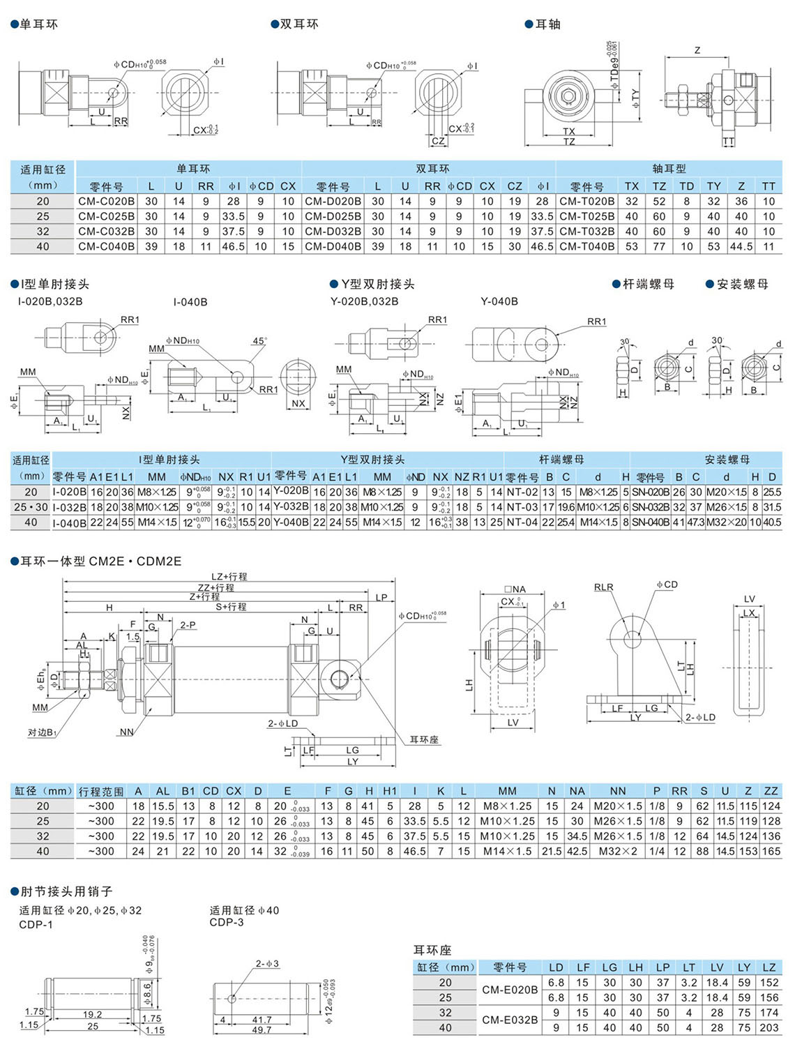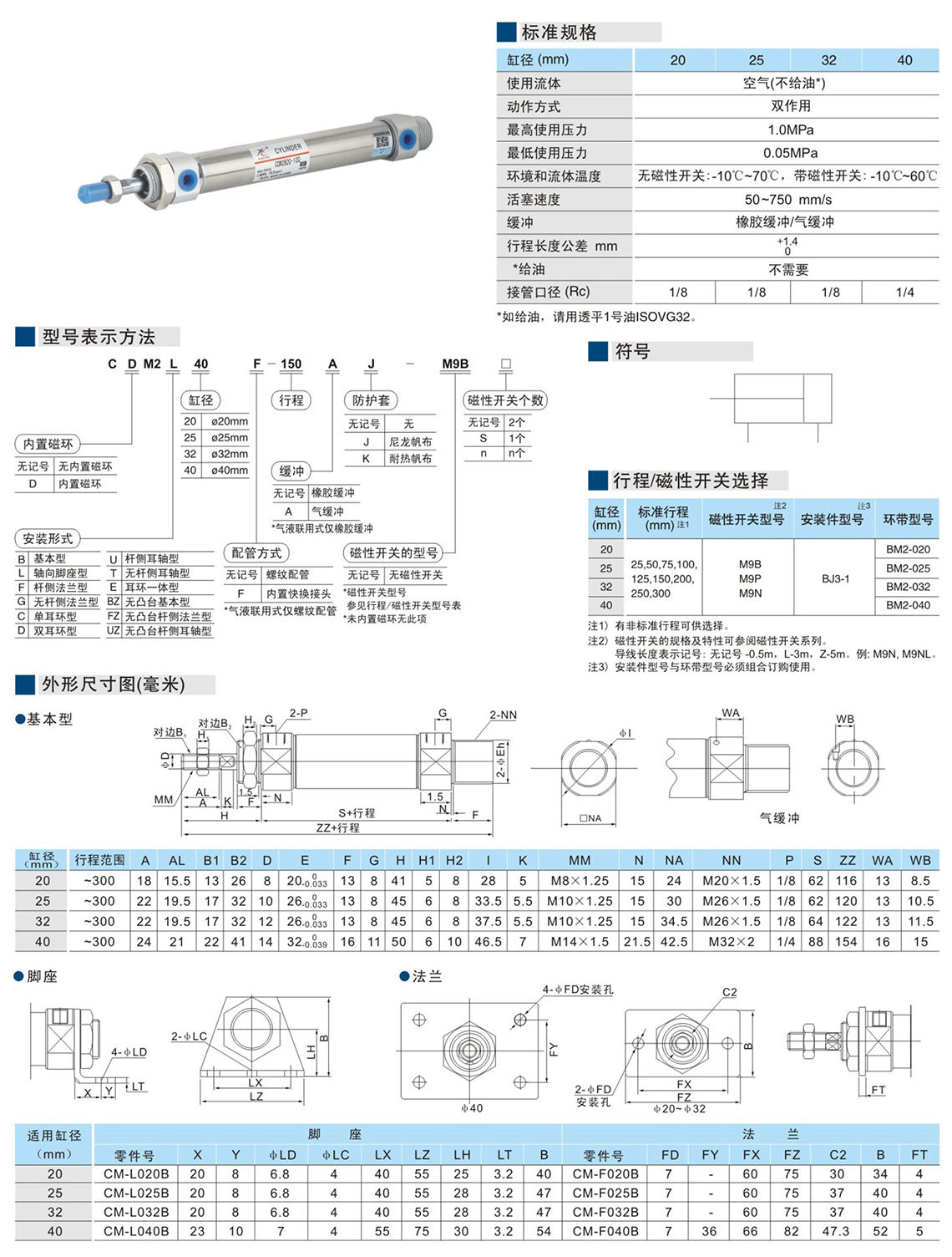 不銹鋼迷你氣缸(雙作用)CM2系列(Φ20-Φ40)