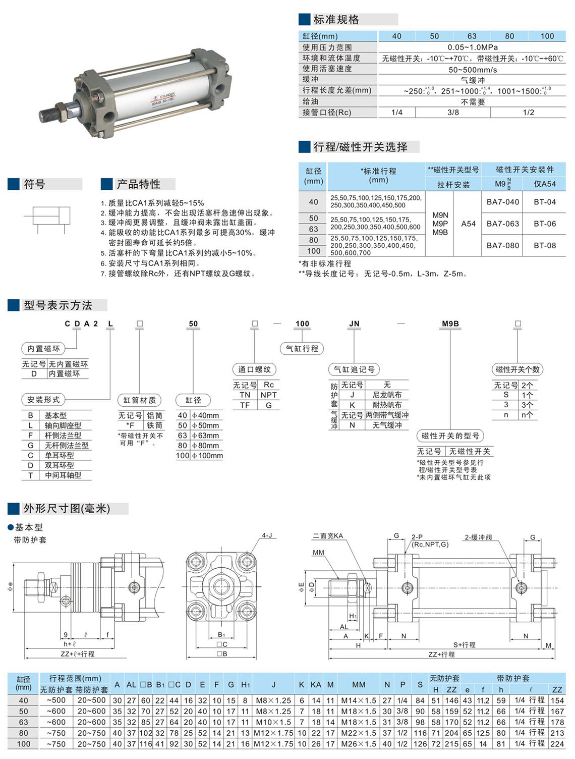 標(biāo)準(zhǔn)氣缸CA2系列(Φ40-Φ100)