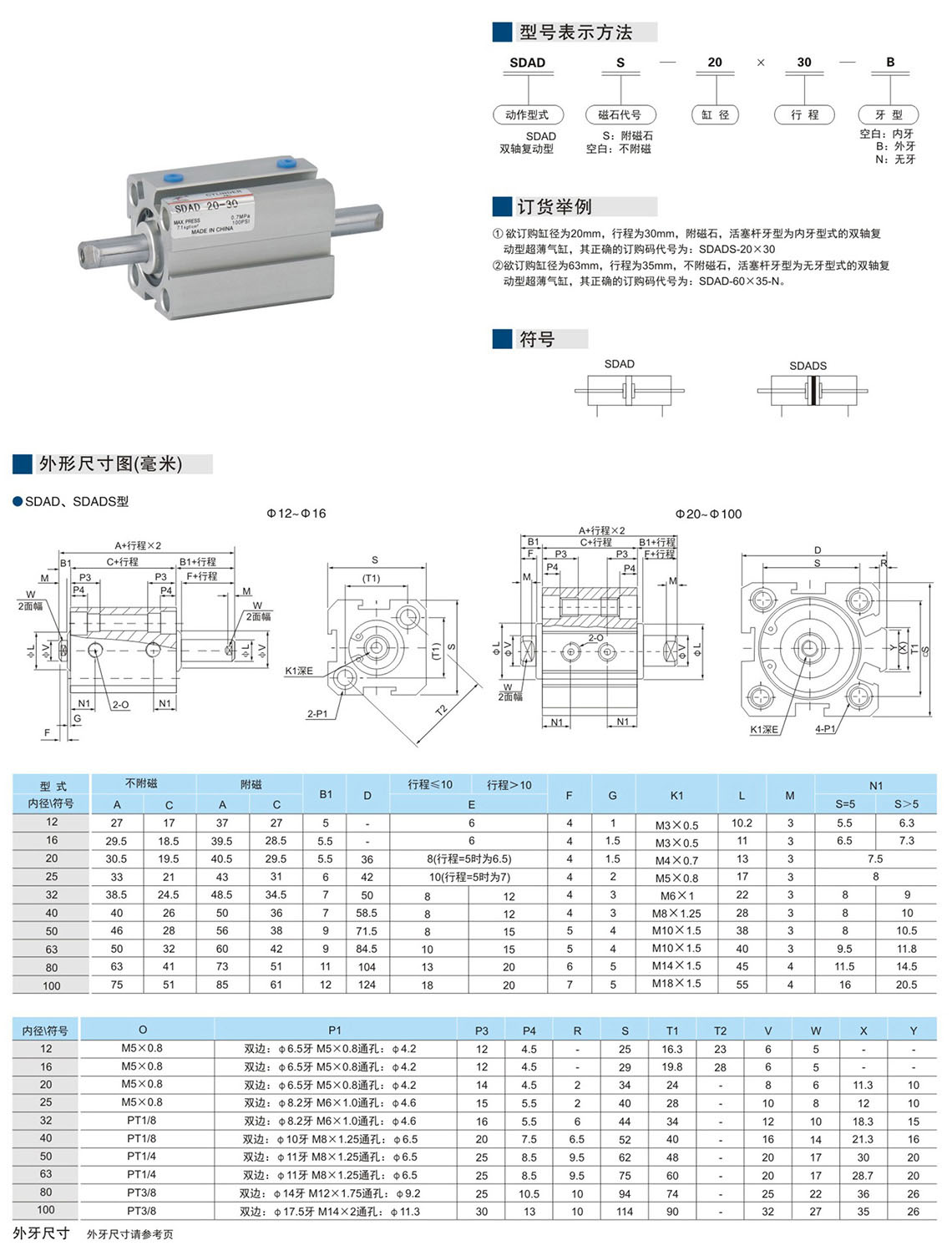 超薄氣缸SDAD系列(Φ12-Φ100)