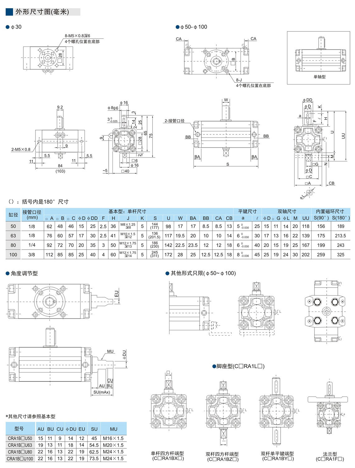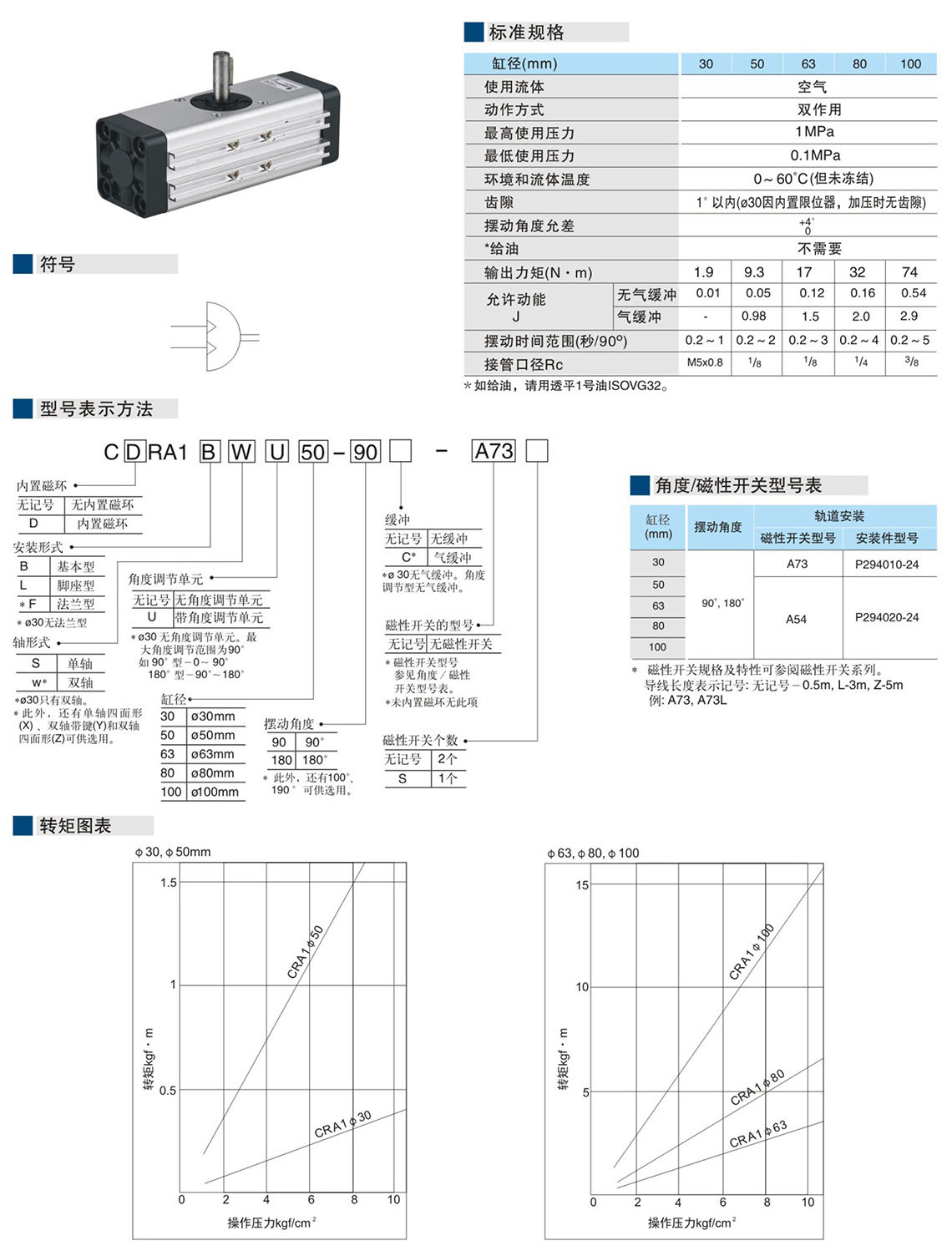 齒輪齒條式擺動(dòng)氣缸CRA1系列(Φ30-Φ100)