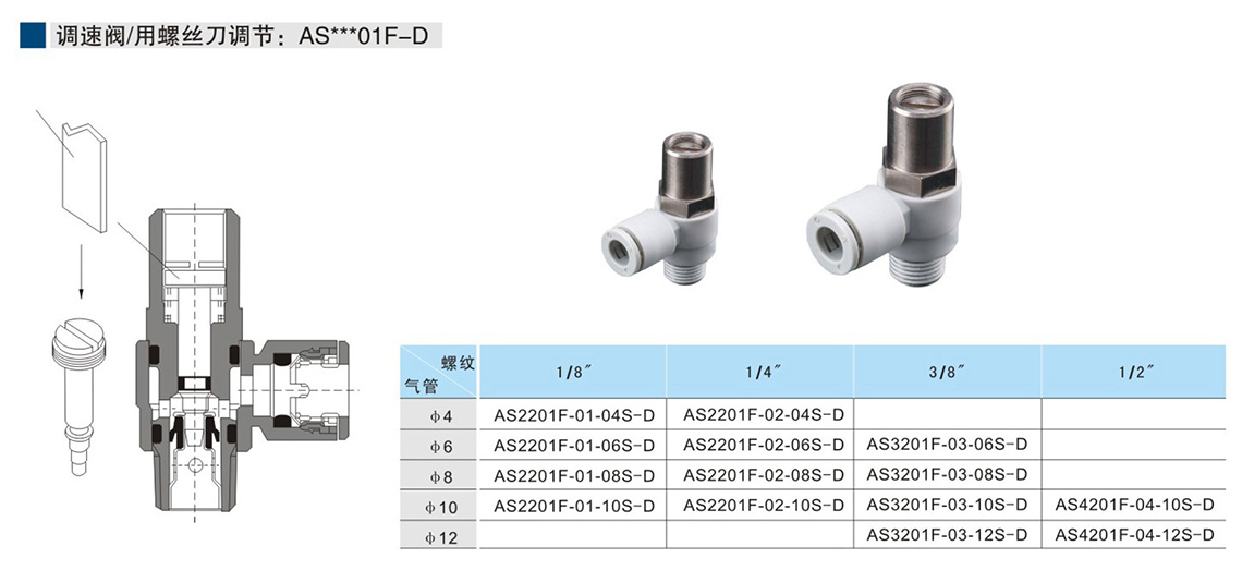 調(diào)速閥AS系列 調(diào)速閥/用螺絲刀調(diào)節(jié):AS***01F-D