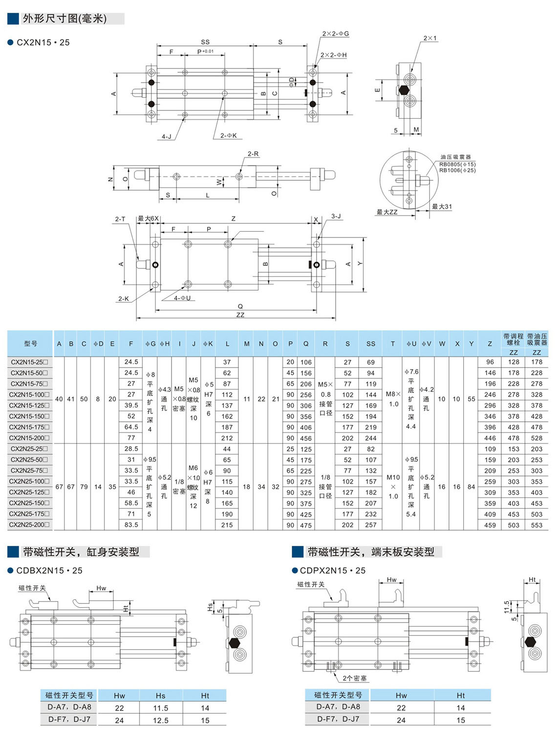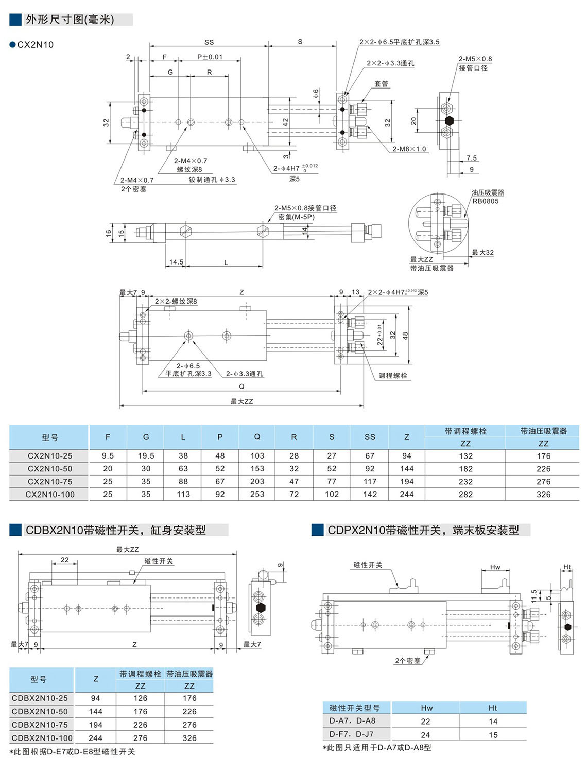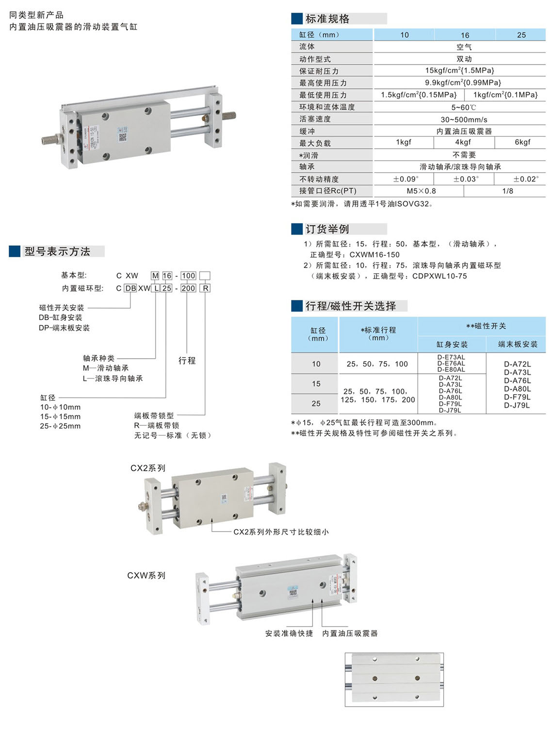 滑動裝置氣缸CX2系列(Φ10-Φ25)