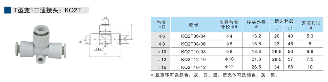 快速接頭KQ2系列 T型變1三通接頭:KQ2T