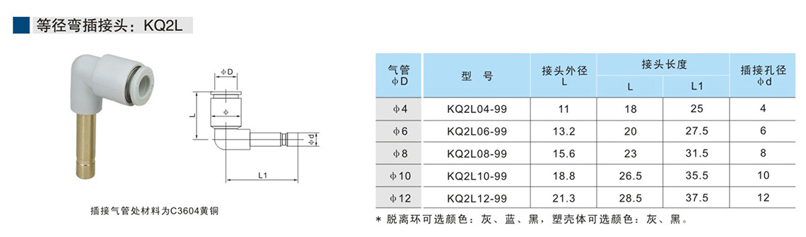 快速接頭KQ2系列 等徑彎插接頭:KQ2L