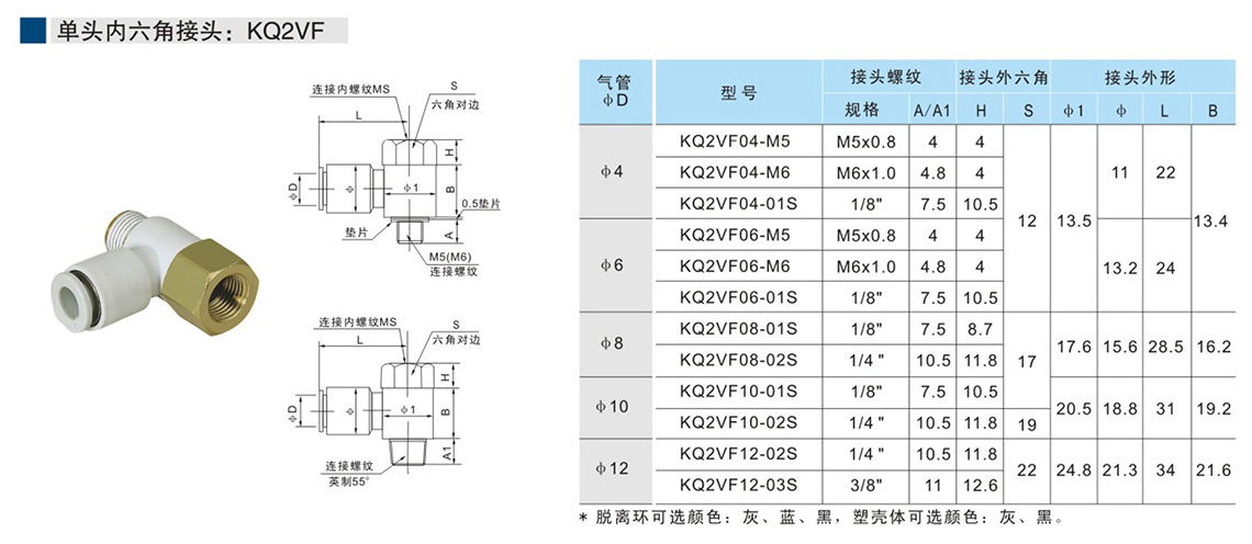 快速接頭KQ2系列 單頭內(nèi)六角接頭:KQ2VF