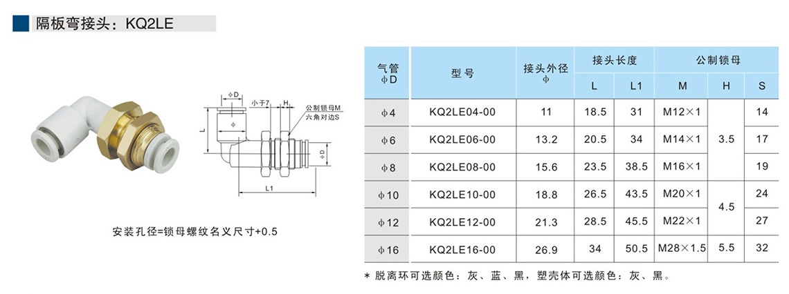快速接頭KQ2系列 隔板彎接頭:KQ2LE