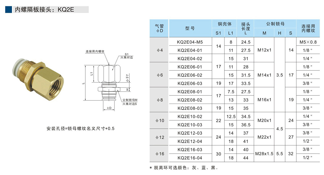 快速接頭KQ2系列 內(nèi)螺隔板接頭:KQ2E