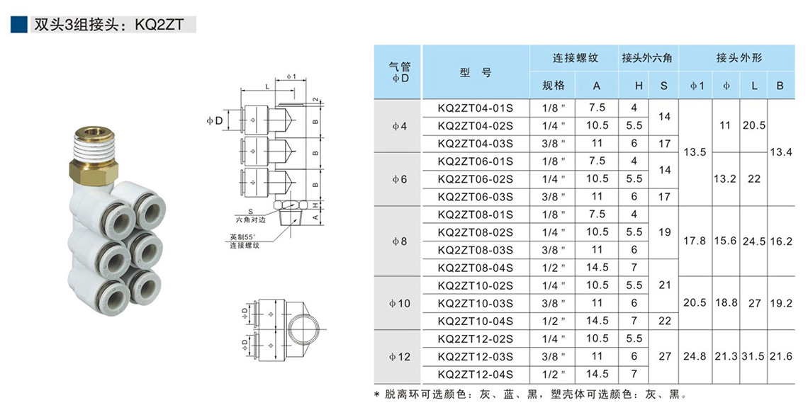 快速接頭KQ2系列 雙頭3組接頭:KQ2ZT