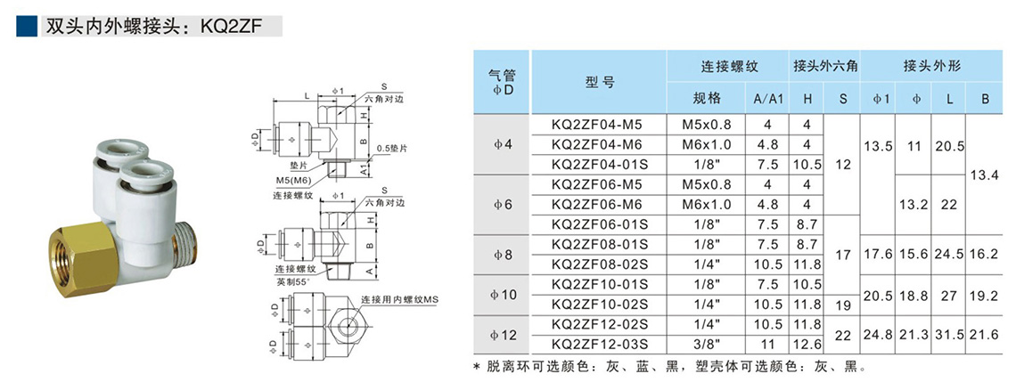 快速接頭KQ2系列 雙頭內(nèi)外螺接頭:KQ2ZF