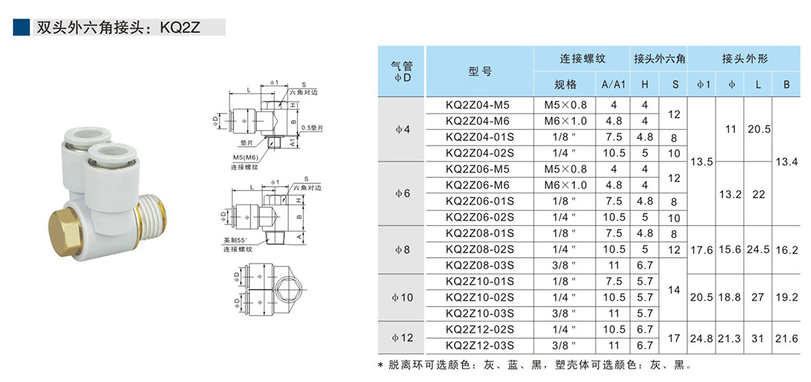 快速接頭KQ2系列 雙頭外六角接頭:KQ2Z