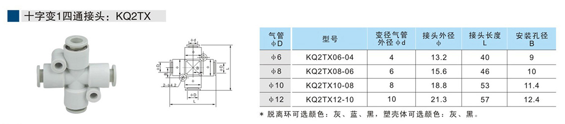 快速接頭KQ2系列 十字變1四通接頭:KQ2TX