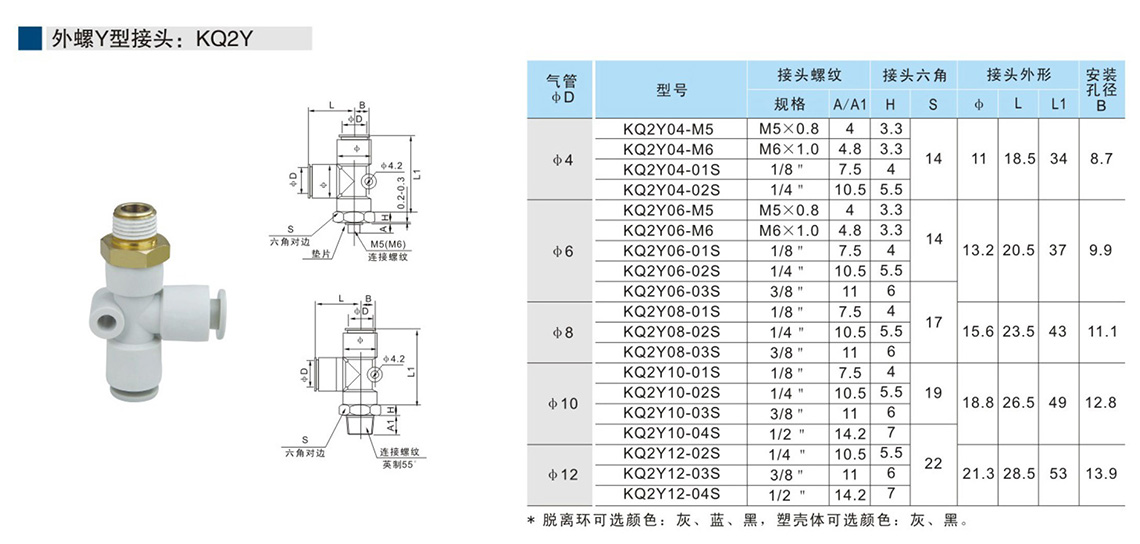 快速接頭KQ2系列 外螺Y型接頭:KQ2Y