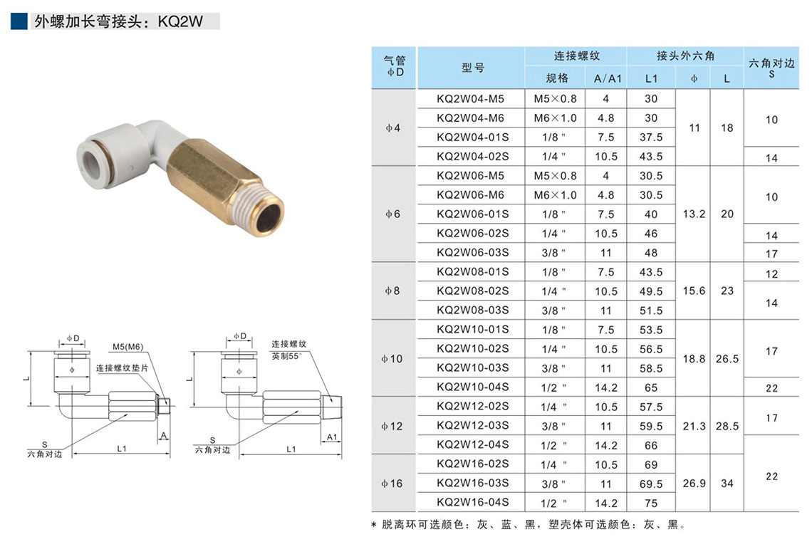 快速接頭KQ2系列 外螺加長(zhǎng)彎接頭:KQ2W
