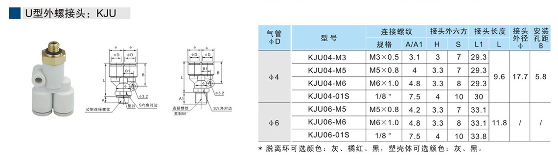 迷你接頭KJ系列 U型外螺接頭:KJU