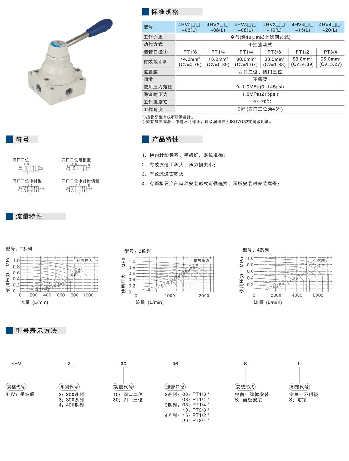 手轉(zhuǎn)閥(四口二位、四口三位)4HV、4HL系列