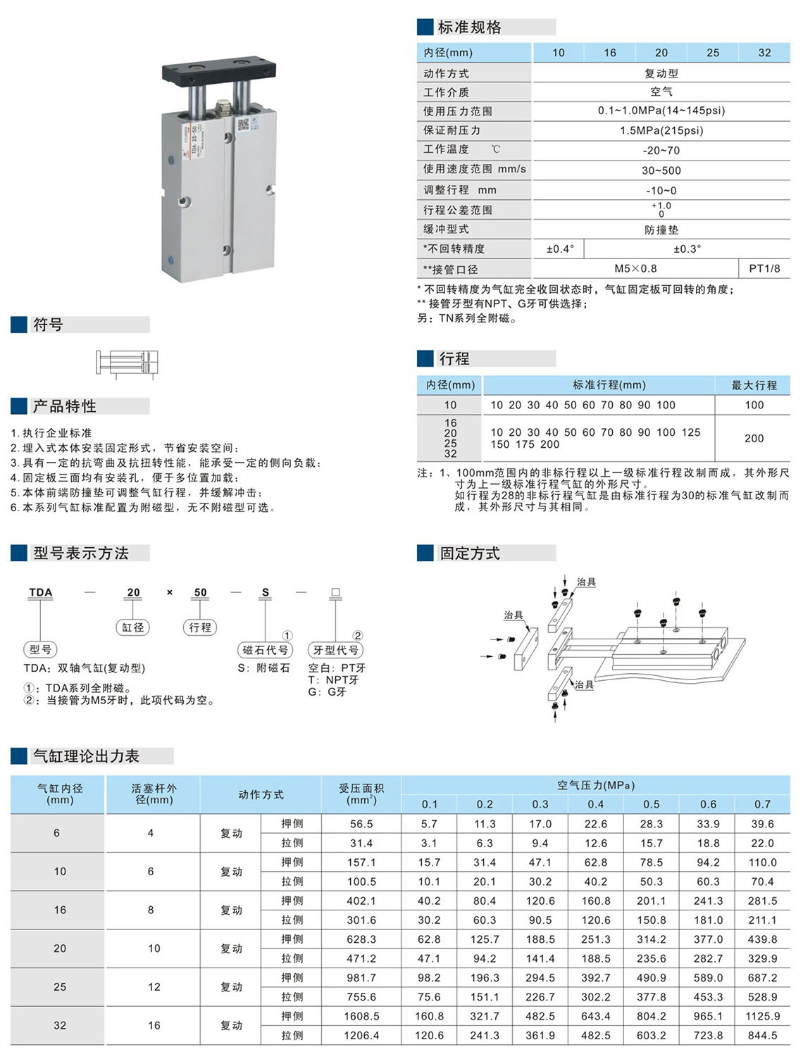 雙軸氣缸TDA系列(Φ10-Φ32)