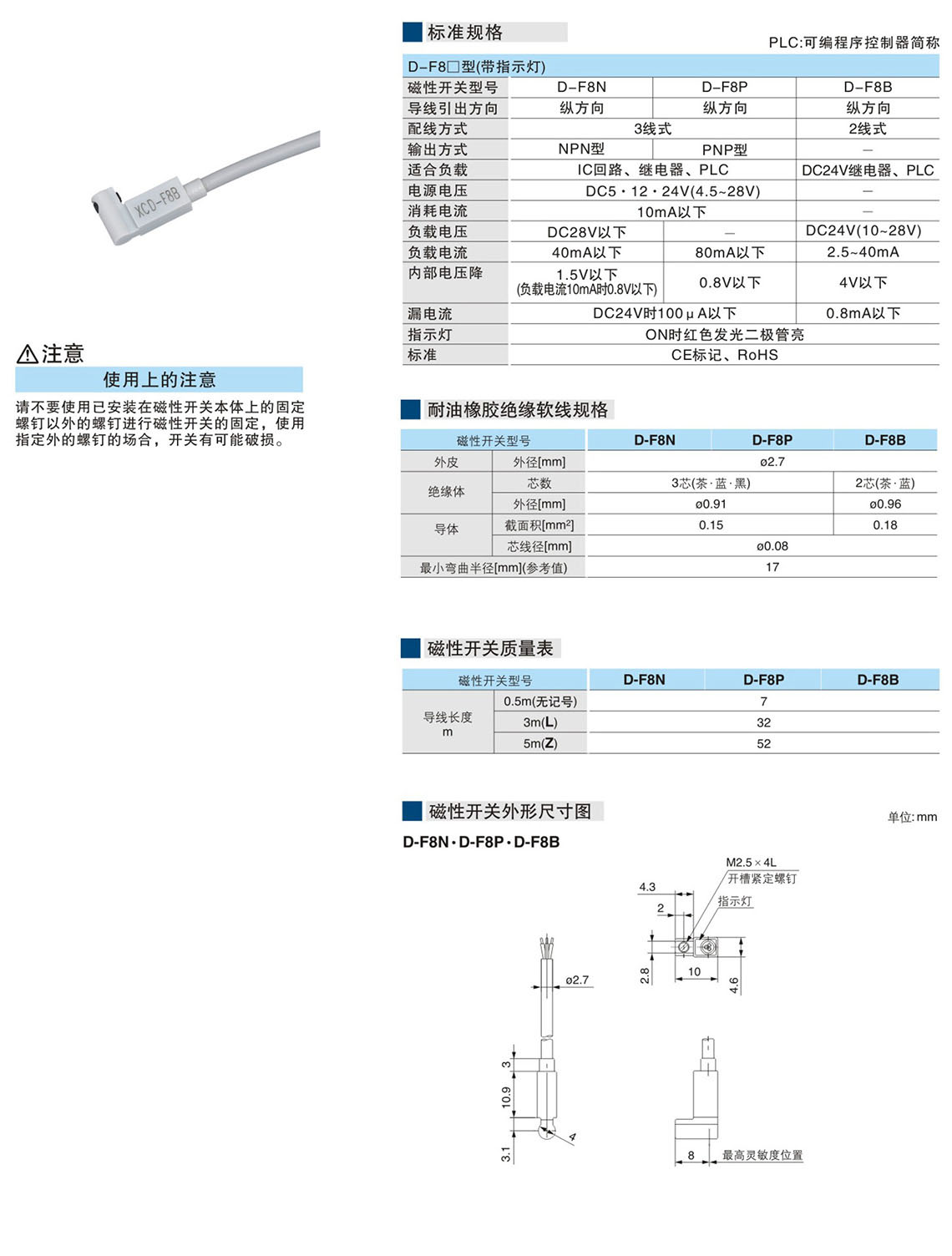 無觸點磁性開關(guān)/直接安裝型D-F8N·D-F8P·D-F8B系列