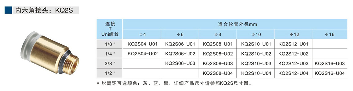 萬用螺紋接頭KQ-U系列 內(nèi)六角接頭:KQ2S
