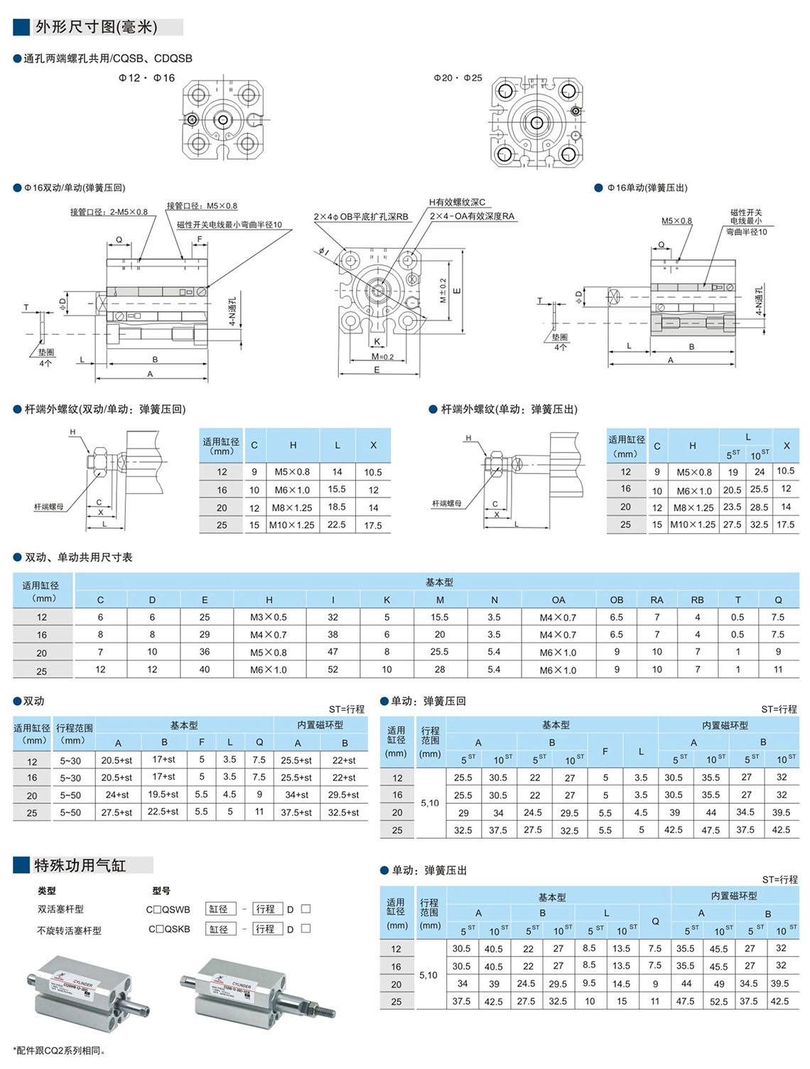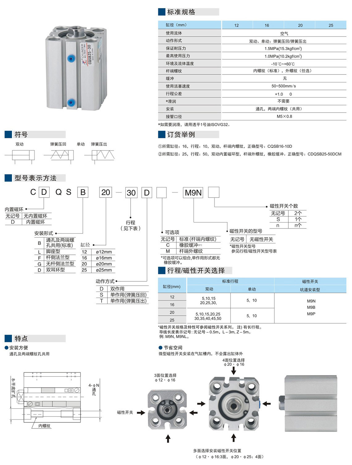 新款薄型氣缸CQS系列(Φ12-Φ25)
