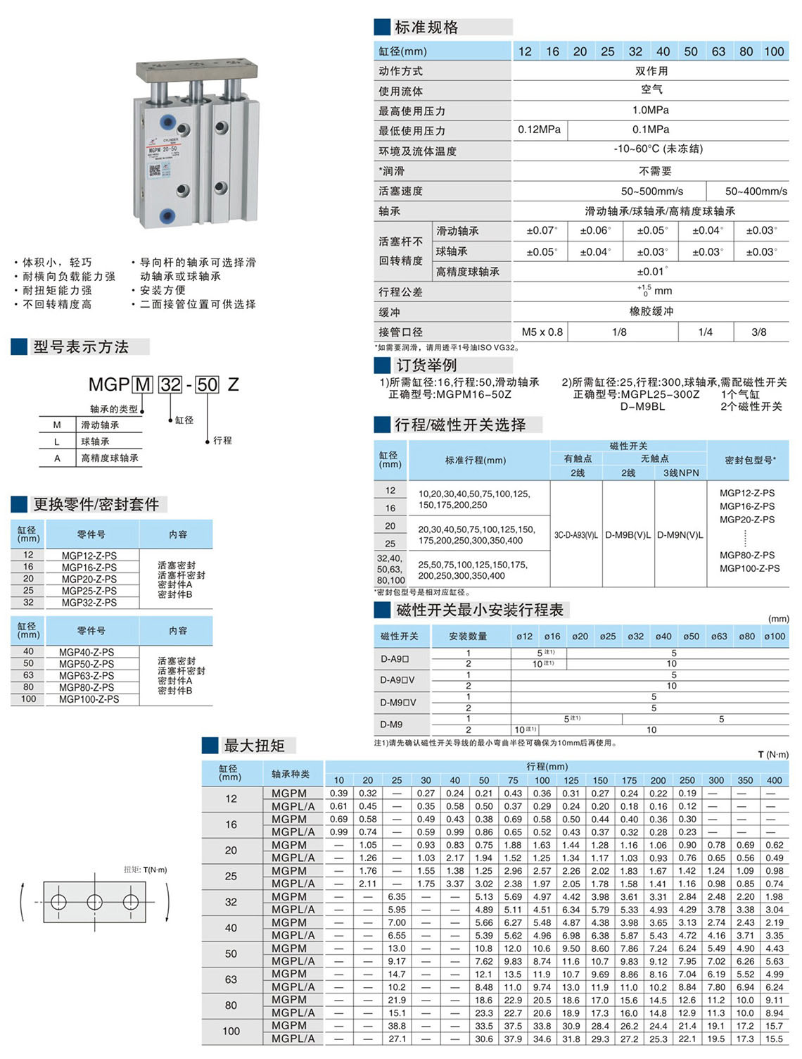 新型帶導(dǎo)桿氣缸MGP系列(Φ12-Φ100)