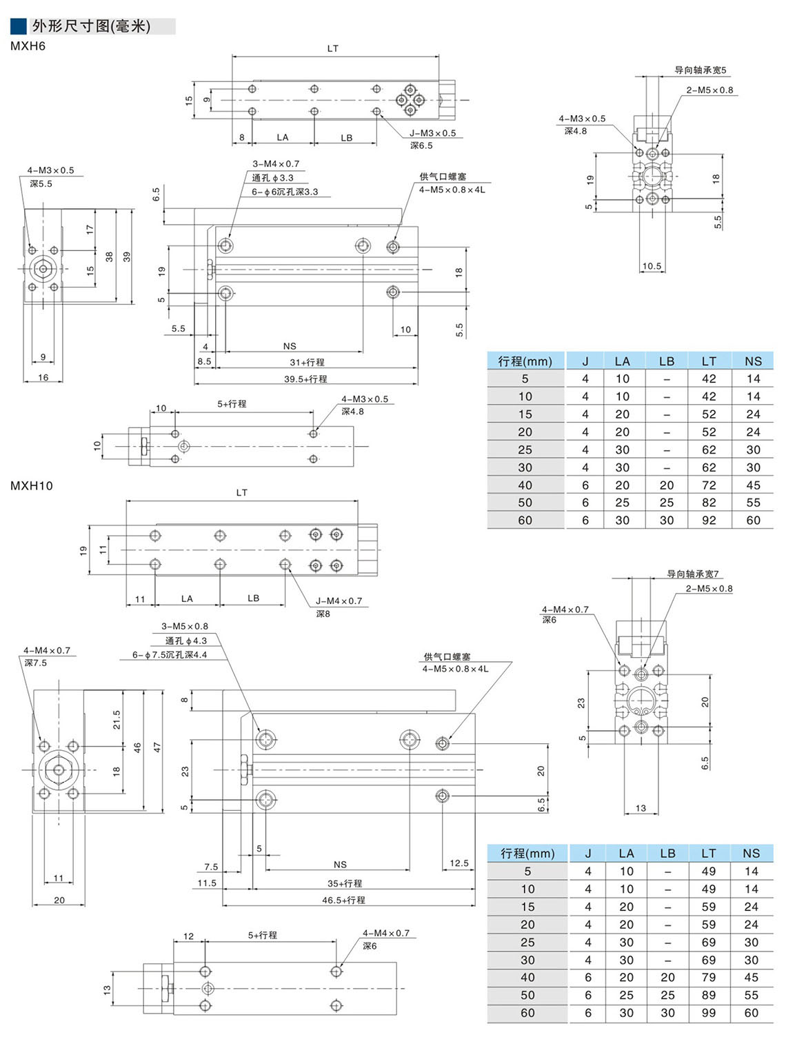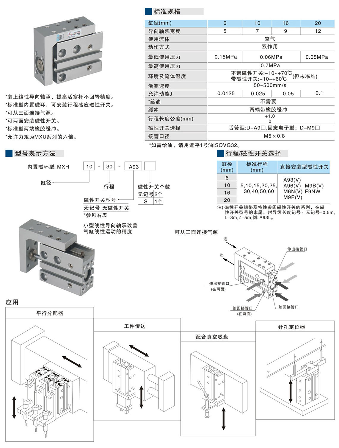 小型氣動(dòng)滑臺(tái)(直線導(dǎo)軌)MXH系列(Φ6-Φ20)