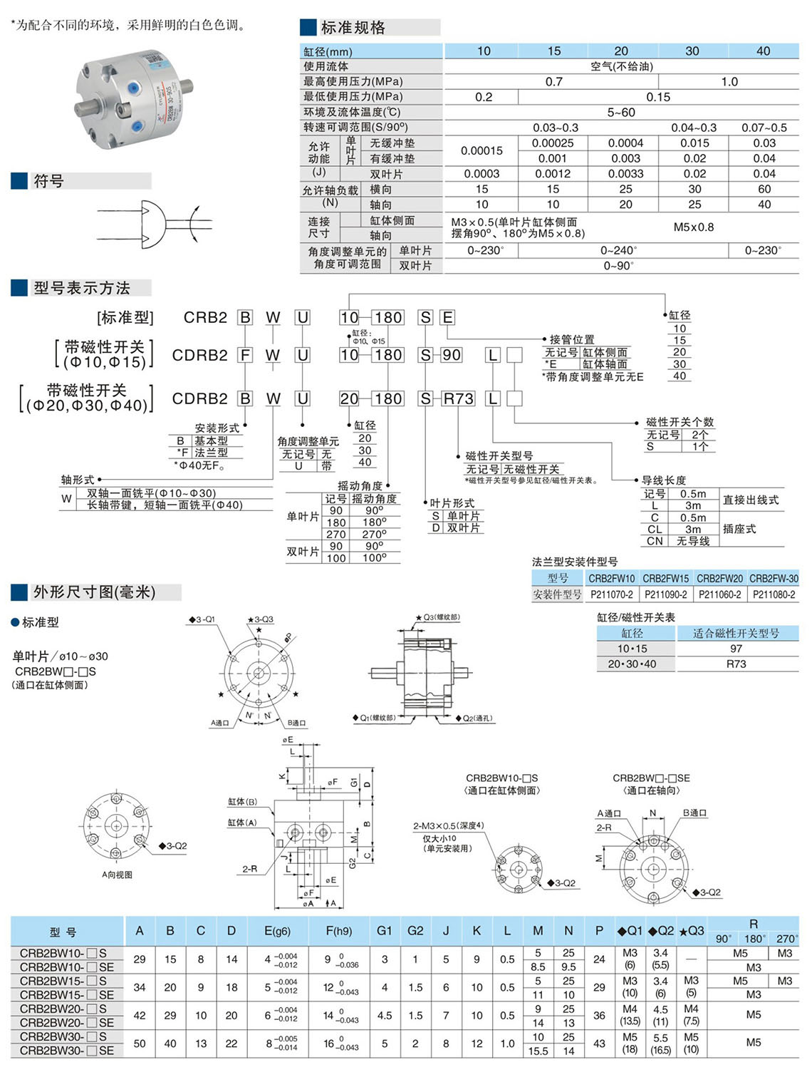 葉片式擺動氣缸CRB2系列(Φ10-Φ40)