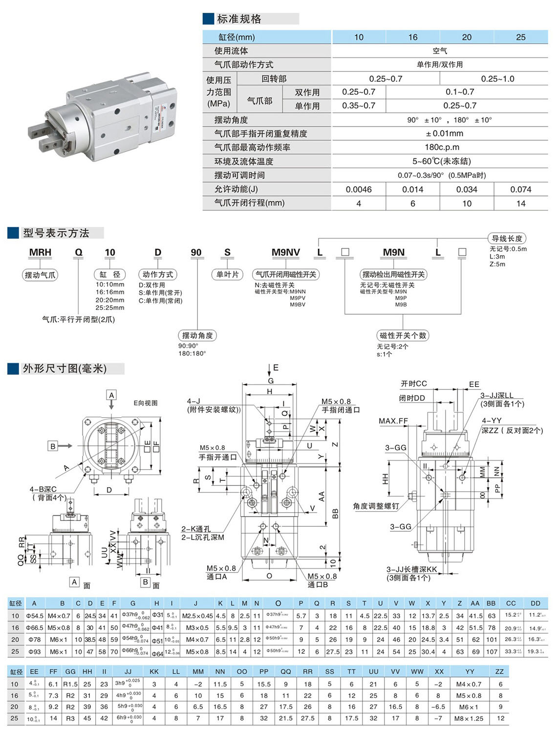 葉片式擺動氣爪MRHQ系列(Φ10-Φ25)