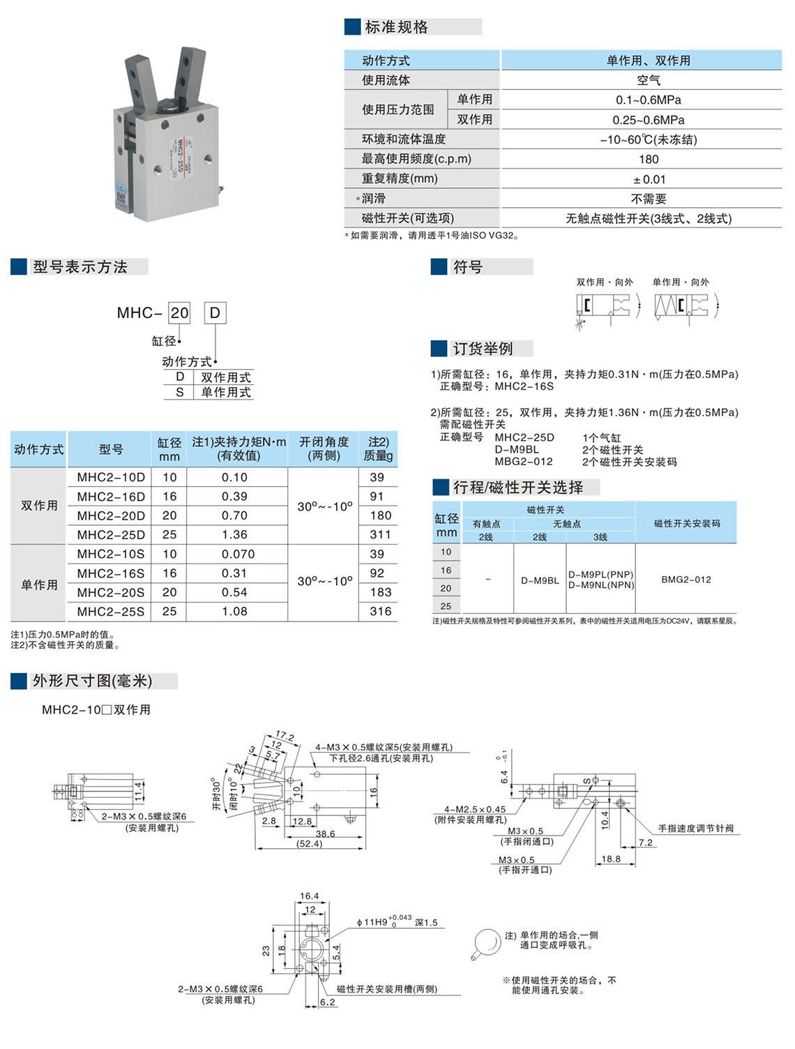 支點(diǎn)開閉型氣缸(標(biāo)準(zhǔn)型)MHC2系列(Φ10-Φ25)