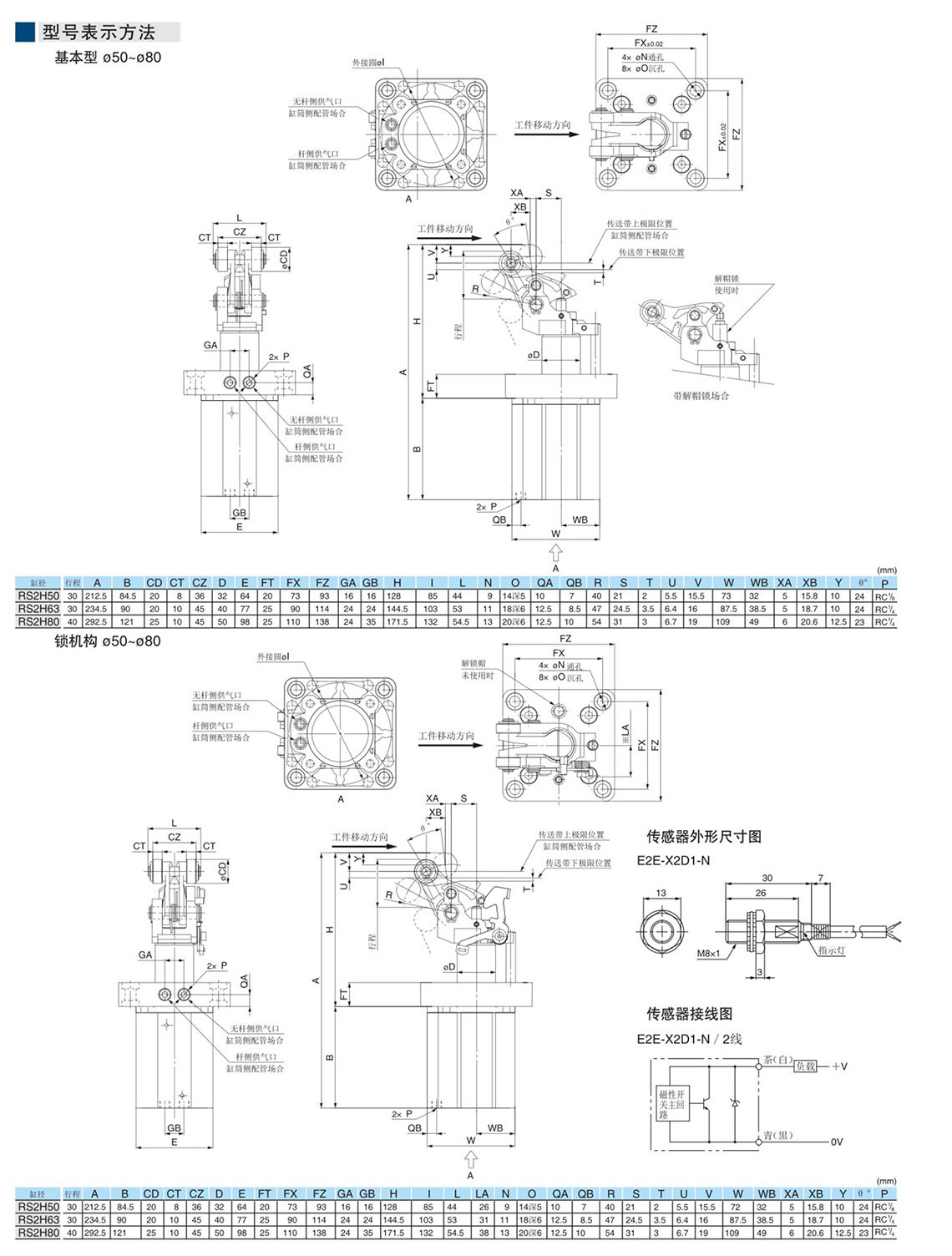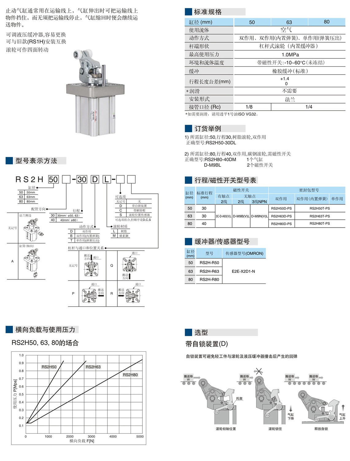 止動氣缸/簡易重載型RS2H系列(Φ50-Φ80)