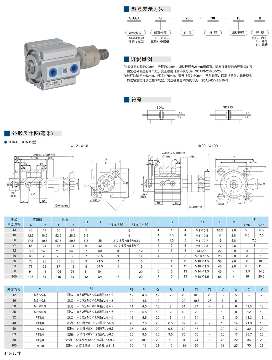 超薄氣缸SDAJ系列(Φ12-Φ100)