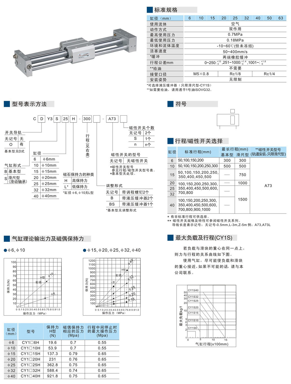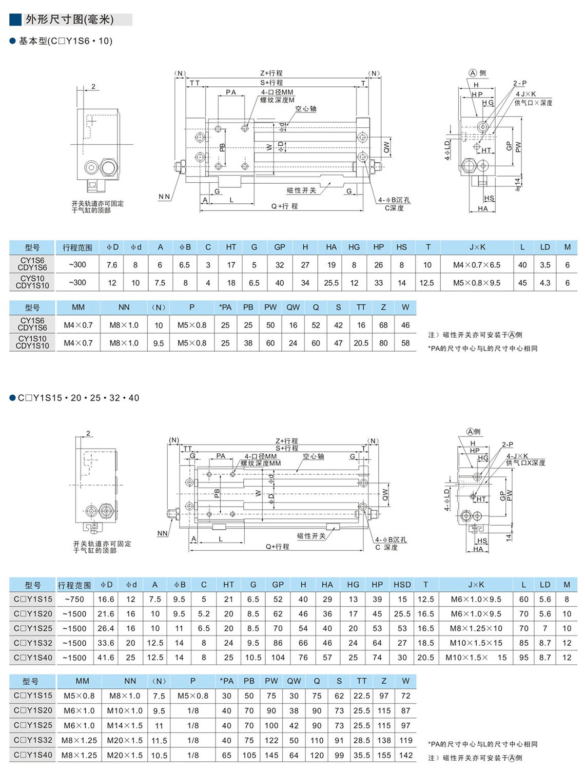 磁偶式無桿氣缸CY3S系列(Φ6-Φ63)