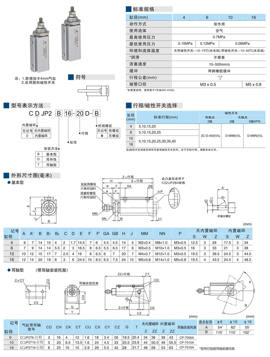 新款針型氣缸(雙作用)CJP2系列(Φ4-Φ16)